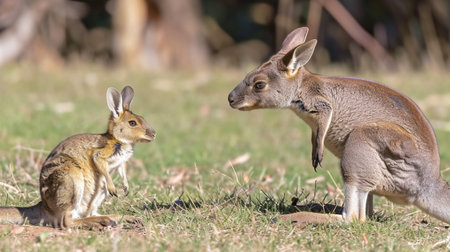 a kangaroo, captured in a stunning photograph, showcases the artistry of photography. shot with a panasonic lumix s pro 50mm f14 lens, the image features a captivating blend of gray and amber tones. this environmental portrait, enhanced with split toning, exudes a dignified presence. a contest-winning shot, this 32k uhd photo beautifully captures the kangaroo's regal poses. ai generated