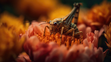 Close up of a vibrant insect showcasing intricate details, vivid colors, and captivating textures ideal for nature and science illustrations