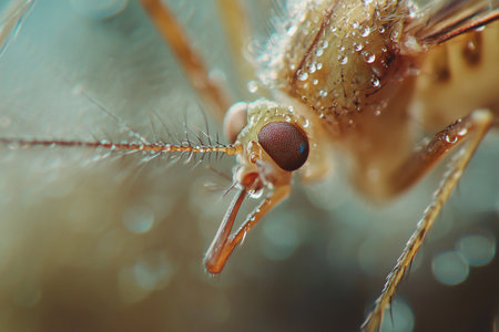 Close up of a female mosquito showing intricate mouthparts used for feeding