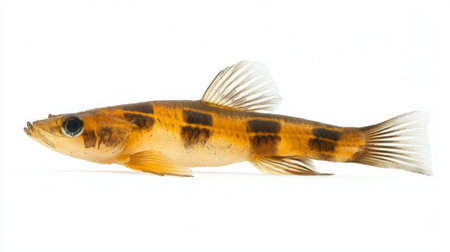 Side view of rhone streber fish, Zingel asper, against white background, studio shot