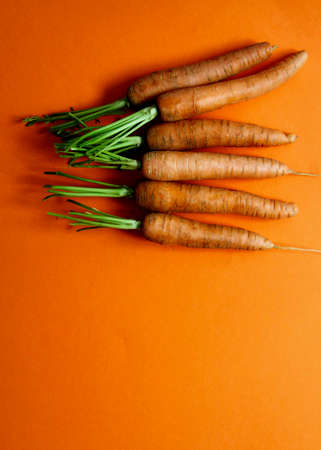 Carrots on brown synthetic fabric background