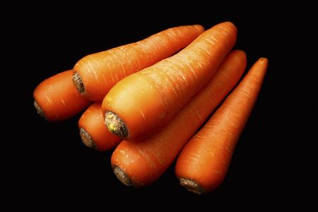 Fresh raw carrots on a black background.