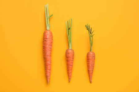 Composition with fresh carrots on color background