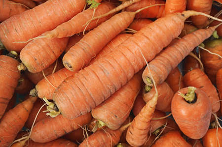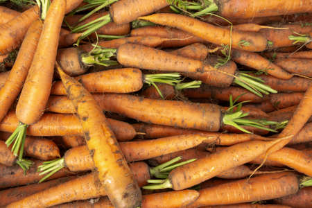Fruits of carrots without a tops of vegetable, randomly piled