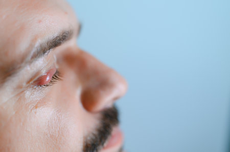 Chalazion on the eyelid of a man close-up.