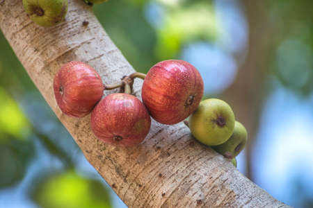 Fresh Figs fruit hanging on the branch of Indian fig tree or goolar ( gular), in Bengali Dumur fruit edible with purplish red skin and soft, sweet flesh with many seeds. Horticultural Spanish.