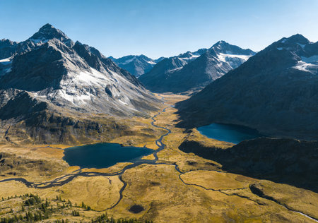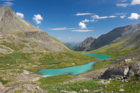 Akchan valley. Lower Akchan lake. Mountain Altai landscape