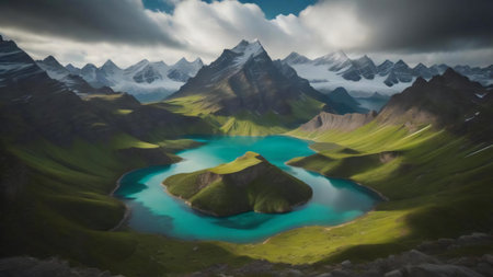 Serene Mountain Lake Dramatic Landscape Aerial View Stunning Nature Scenery Picturesque Vista