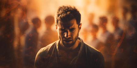A man struggling with selfdoubt and depression battles his inner demons. Concept Mental Health, Inner Struggles, Overcoming Challenges, Seeking Hope