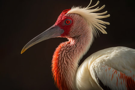 Close-up of a red-necked stork on a dark background