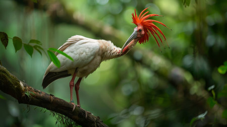 Portrait of Scarlet Ibis (Eudocimus Ruber) Bird in the Forest