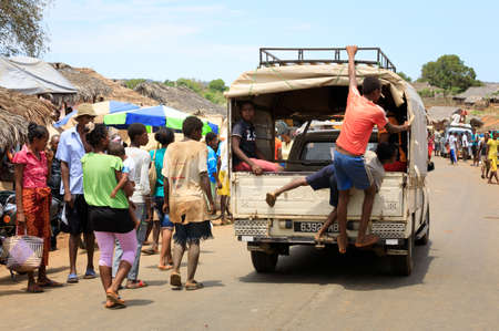 SOFIA ,MADAGASCAR NOVEMBER 4.2016 Malagasy peoples on on main street of Sofia city. Ordinary peoples life. Madagascar, November 4. 2016