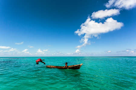 Antsiranana, Madagascar, November 19, 2016: Departure for fishing in Ramena beach of Antsiranana (Diego Suarez), north of Madagascar