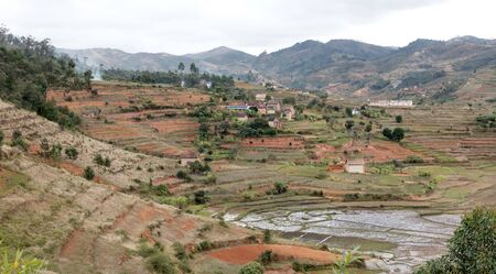 Traditional Madagascar highland landscape. Deforestation in Madagascar creates agricultural or pastoral land but can also result ecology problem with soil and water. Madagascar