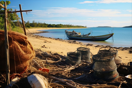 Capturing the Authentic Charm of a Local Fishing Village: Fish Traps, Small Boats and Casuarina Plantation