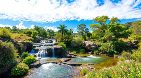 Beautiful waterfall in the tropical forest. Panoramic image.