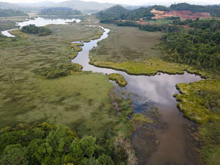 Early morning aerial view of Lake Chini. Selective focus points. Blurred background