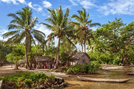 Antongil bay, Madagascar, April 24, 2017: Typical village on the banks of Antongil bay, eastern Madagascar