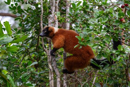 Red ruffed lemur (Varecia rubra) in a tree
