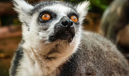 detail of ring tailed lemur catta staring