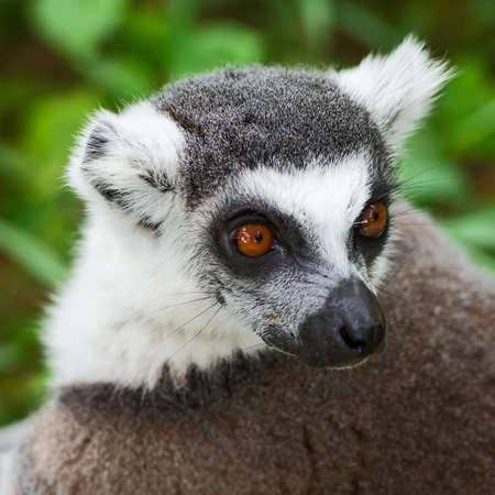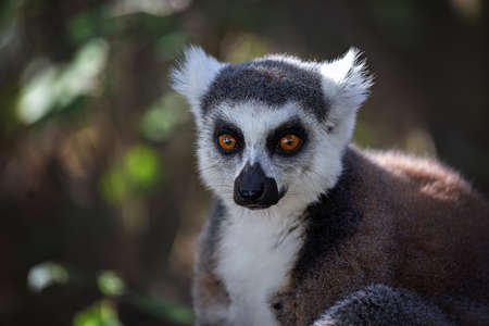 Lemur catta animal, detail of head. Mammal naturally living on Madagascar.