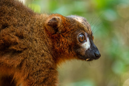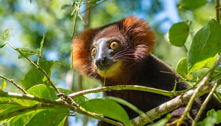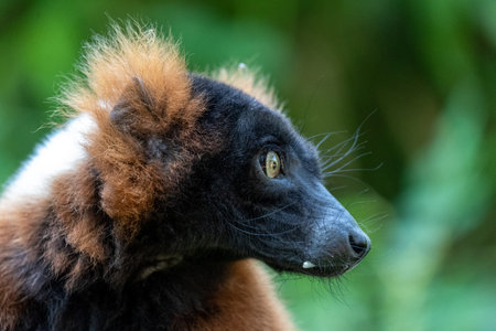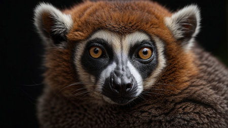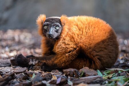 A closeup shot of a cute red ruffed lemur