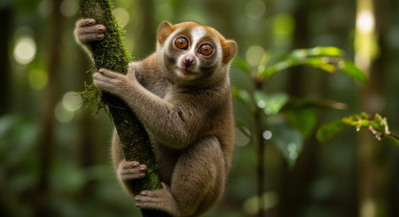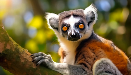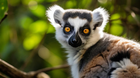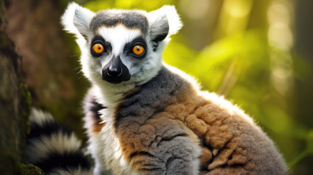 Curious lemur captivates attention with its inquisitive gaze while nestled among the verdant beauty of the forest AI generated.