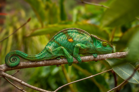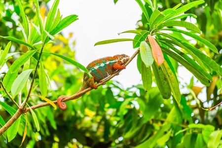 Panther Chameleon - Furcifer pardalis, Madagascar. Beautiful lizard from Madagascar rainforest, Endemic colorful.