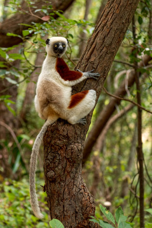 Coquerel’s Sifaka, Tropical forest jungle in Madagascar island