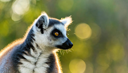 Lemur with striped tail in sunny summer evening