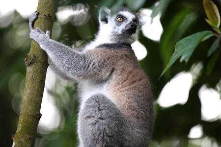 The Lemurs in a rain forest on the trees, hopping from tree to tree