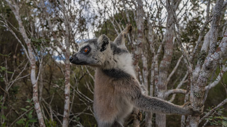 A funny ring-tailed lemurs in their natural environment