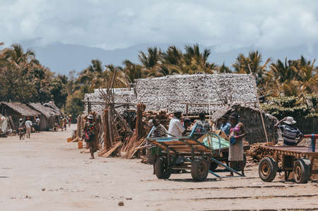 MADAGASCAR OCTOBER 18.2016: Malagasy people on marketplace street. Daily life in Madagascar. October 18. 2016, Madagascar, Toamasina Province