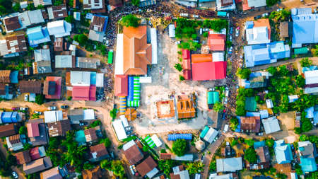 Dhat jampa temple in countryside,Nakhon phanon,Thailand from bird eye view