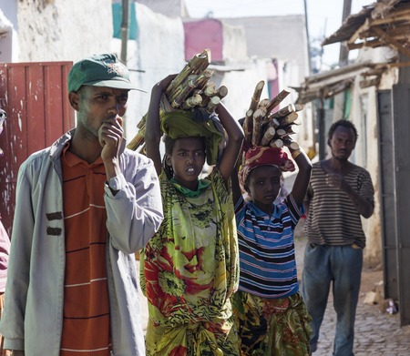 HARAR, ETHIOPIA - DECEMBER 23, 2013 Unidentified people of ancient walled city of Jugol in their daily routine activities that almost unchanged in more than four hundred years