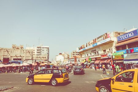DAKAR, SENEGAL - NOVEMBER 11, 2019: People working and traffic at Senegal capital Dakar, West Africa.
