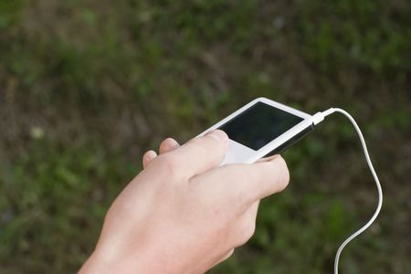 teenager holding mp3 player - outdoors