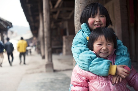 QIJIANG,SICHUAN, CHINA - APRIL 4, 2010:the nameless little girl smiling face of the lens, Sichuan Province, China, April 4, 2010. Many children are home alone, parents who work.