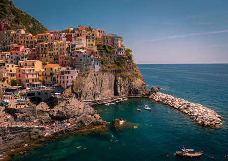 View of beautiful colorful village Manarola, Cinque Terre, coast of Italy