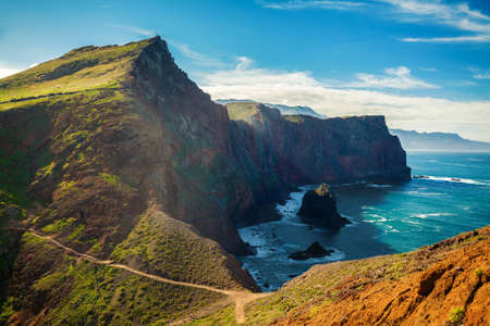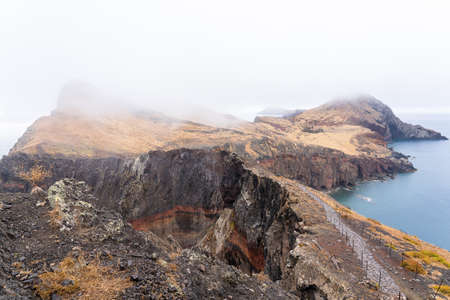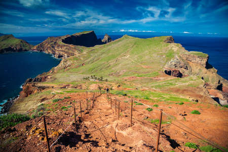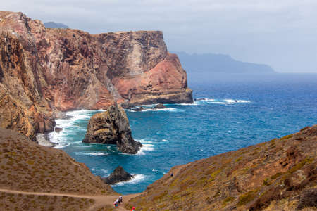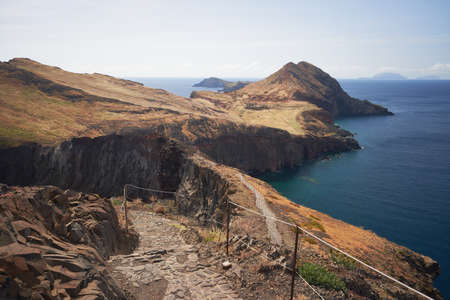 Hiking trail and beautiful seascape. Ponta de São Lourenço, east Madeira coast. Atlantic ocean. Favorite touristic destination.
