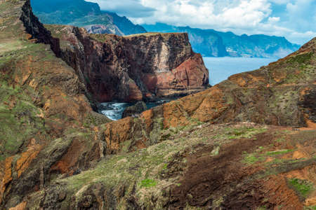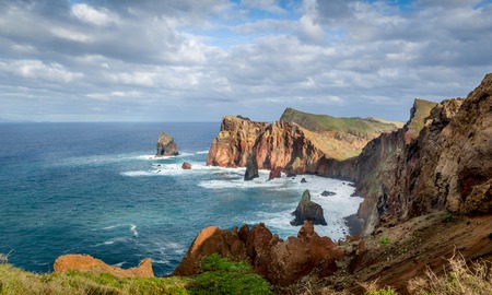 Rust colored cliffs and sea stacks at Ponta de Sao Lourenco, Madeira