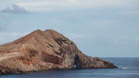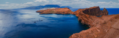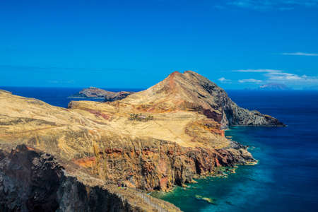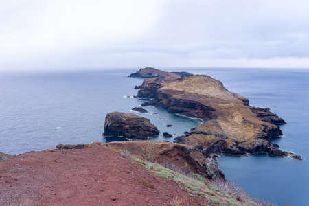 Ponta de Sao Lourenco peninsula with rust red cliffs and islets