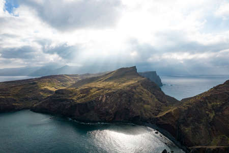 Aerial view of Ponta de Sao Lourenco cliffs on Madeira, Portugal