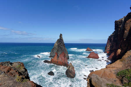 Madeira St. Lawrence Peninsula viewpoint Portugal, beautiful landscape with sea, ocean, mountains, waves. The most beautiful place to travel