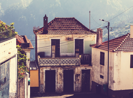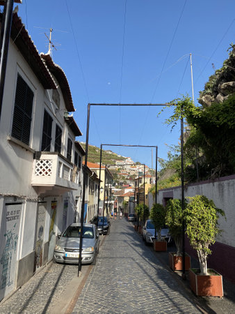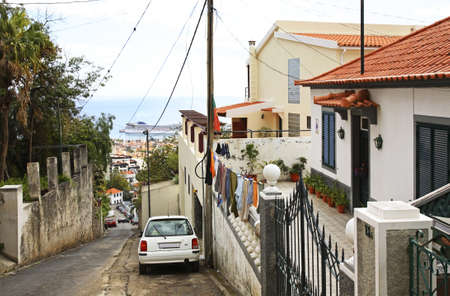 Funchal, Madeira, July 06, 2016: Street view of a houses in Santa Maria, Madeira