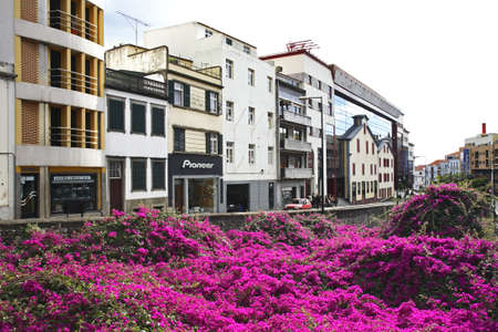 View of the restored old homes in Ponta Delgada, Azores, Portugal