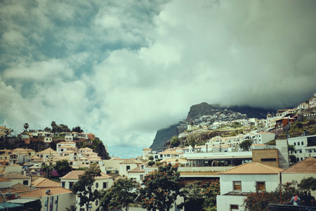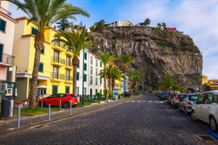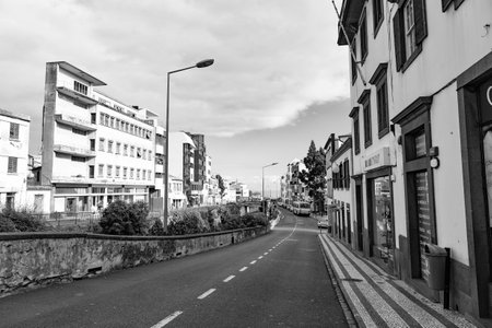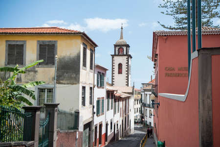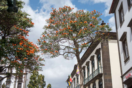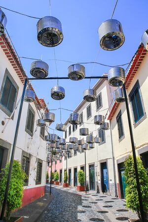 Beautiful fresh vibrant cityscape view of the authentic streets of Funchal, Madeira