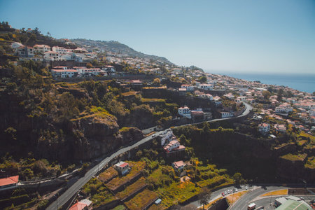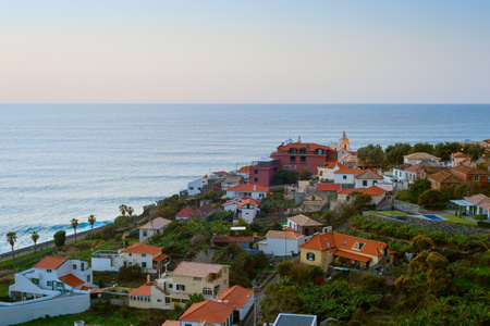 Aerial view of typical Madeira island village at twilight. Paul do Mar, Madeira, Portugal