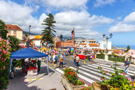 La Orotava, Tenerife, Spain - June 11, 2015: Unidentified tourists walking in historic town La Orotava, Tenerife, Spain