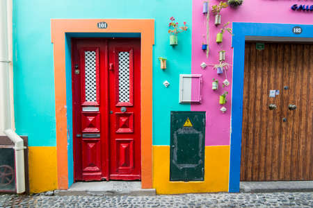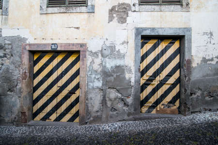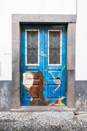 Funchal, Madeira, July 06, 2016: Painted door and wall of a house in the street of Santa Maria, Madeira